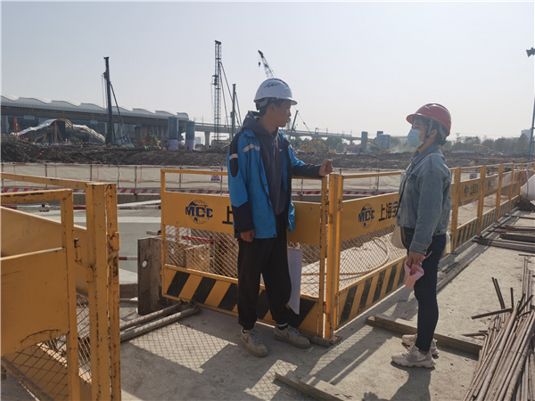 25日两位老师去往位居上海市浦东新区康桥镇康新公路F01-06地块的上海宝冶集团有限公司康桥镇星河酒店项目,和公司生产经理印前名、学生带班师傅邓荣杰、造价1802班的张祖龙一起走访项目并进行了会谈,会谈时主要了解实习学生工作是否适应、工作环境如何、薪资待遇、生活情况如何等方面,项目领导对学生表现比较满意,希望学生能踏踏实实的用心学,争取毕业后尽早转正。