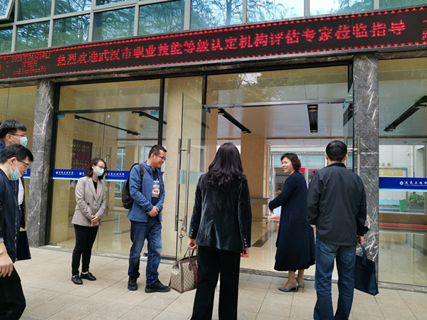 4月16日上午10:30,武汉市人社局领导、专家组一行6人莅临我院评估、指导职业技能等级(工程测量员)认定工作。工程测量技术专业曹君老师从专家队伍、国家职业技能标准、设备、场地、考试、工位等内容向各位专家进行了详细介绍,专家组对我院职业技能等级认定工作给予了高度评价。