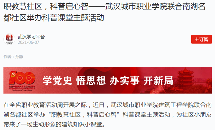 【外宣】 职教慧社区,科普启心智——武汉城市职业学院联合南湖名都社区举办科普课堂主题活动
