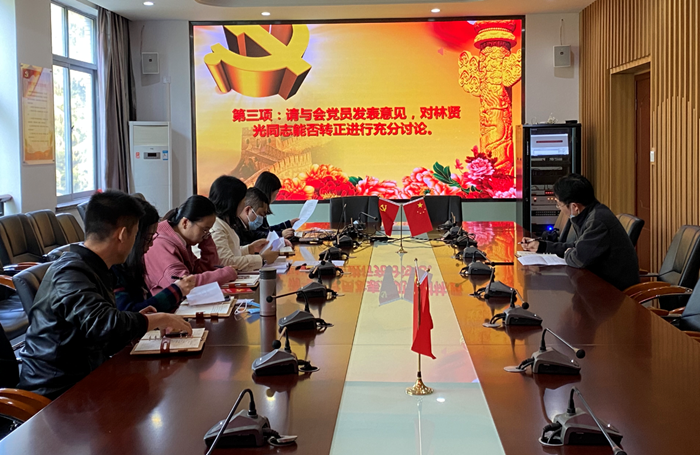经支部大会无记名投票表决,对林贤光同志的赞成人数超过应到会有表决权的正式党员的半数,同意其按期转正,党龄从2021年11月13日算起。林贤光同志针对自身存在的不足和今后的努力方向进行了表态。