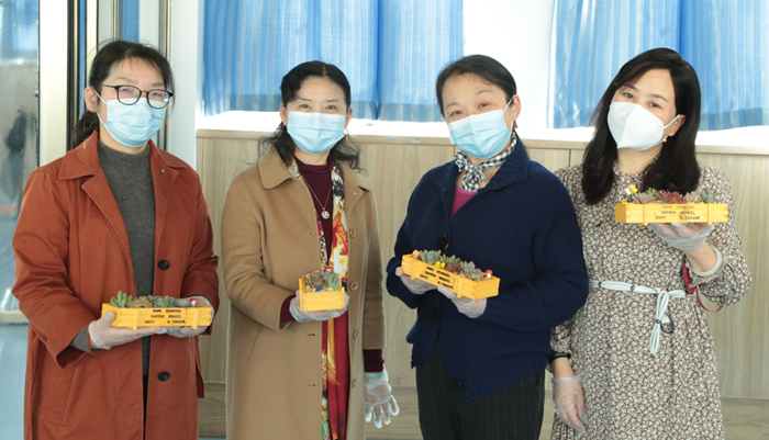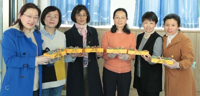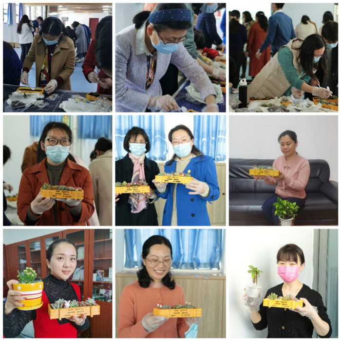 本次活动的主题是“多肉植物盆栽培训与实践”。活动现场,全体女教职工首先接受了多肉植物品种及盆栽知识的专题培训,然后在专人指导下,大家纷纷动手进行盆栽DIY。取出沙土,铺满花盆,小心翼翼栽培多肉,进行创意装饰……全体女教职工参与活动的高涨热情远远胜于当天的气温,一盆盆精美创意的作品为此次活动画上了圆满句号。