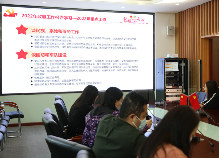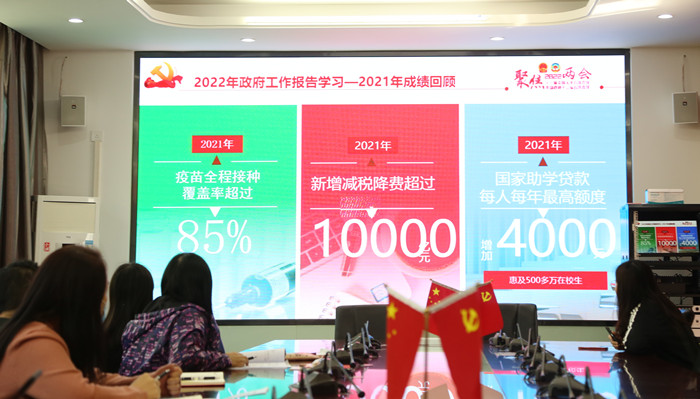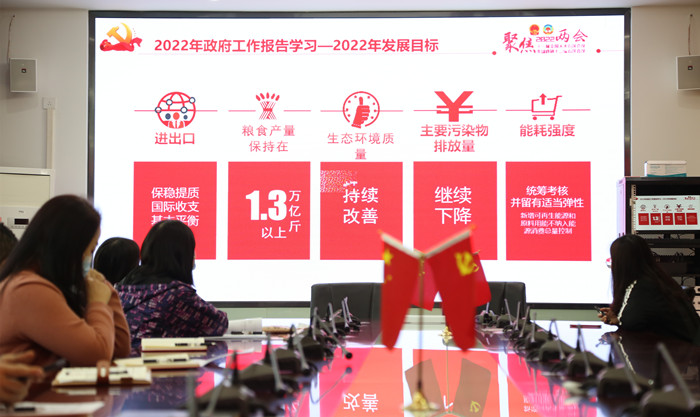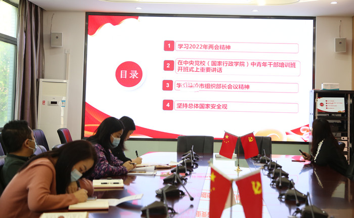 聚焦全国两会精神,潘雪同志围绕全国两会会议时间和议程以及2021年成绩回顾、2022年形式判断、2022年发展目标、2022年工作重点等方面,同与会党员一起进行了深入的学习和交流。