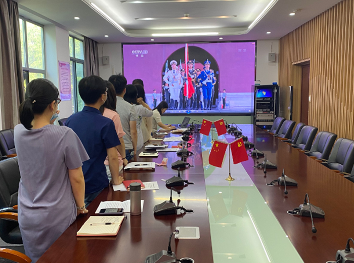 全体与会党员自觉缴纳党费、齐唱国歌、重温入党誓词、集体诵读《中国共产党普通高等学校基层组织工作条例》第六章干部和人才工作、为刘敏、傅琛和潘雪三位同志过政治生日赠送良言诤语。会上,刘书记围绕6月份支部主题党日重点学习内容提示和习近平近期重要讲话精神向与会党员进行活动部署。