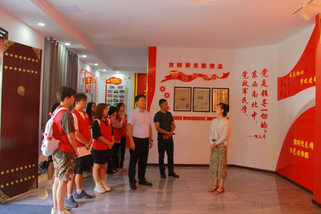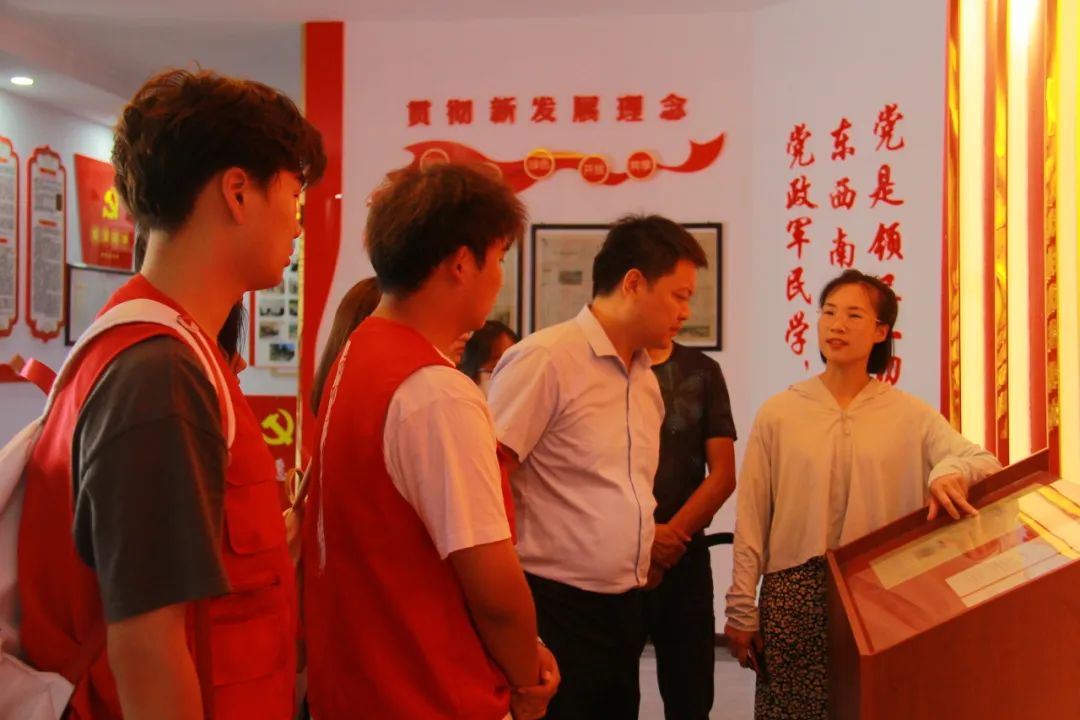 实践团队参观房县特色乡村建设示范村南潭村。南潭村驻村第一书记房县税务局高良军、村委会主任沈敏对团队的到来表示热烈欢迎。沈敏主任带领师生团队走进“南潭精神馆”,讲解了南潭村改造前和改造后的变化,并提到这一切的变化离不开南潭人民艰苦奋斗、自力更生的奋斗,更离不开当地党员干部勇担重担、争先示范的带头作用。展厅内的红色板块通过大量的照片和动态影像,重现了共产党人不畏艰难、前赴后继的伟大壮举,墙上还挂着南潭精神的口号:并观看南潭村专题片“要发扬南潭人扎实肯干、不等不靠的‘南潭精神’,用心做好每一项工作。”