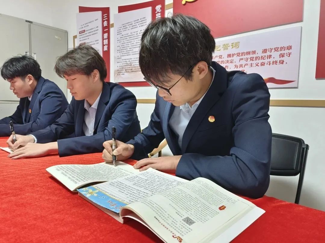 首先由19-106党团活动室负责人常昊轩同学向6名入党积极分子学员代表介绍该活动室的功能、服务对象以及使用方法,为后续活动室的正常使用做了大致的综述接着常昊轩同学带领大家一同学习党的二十大相关理论报告,丰富充实学员的理论知识,使之更加全面的了解党和认识党集体学习完成后,学员们就着此次机会询问有关党员发展流程的相关问题,并对党课学习中的疑问提出了见解,常昊轩同学对其进行了一一解答,并勉励大家继续努力提升,现在距离一名合格的共产党员还有很长的一段路要走最后由常昊轩同学带领大家集体重温入团誓词,牢记身为一名共青团员的责任和义务,继续投身于为同学服务的工作当中去。