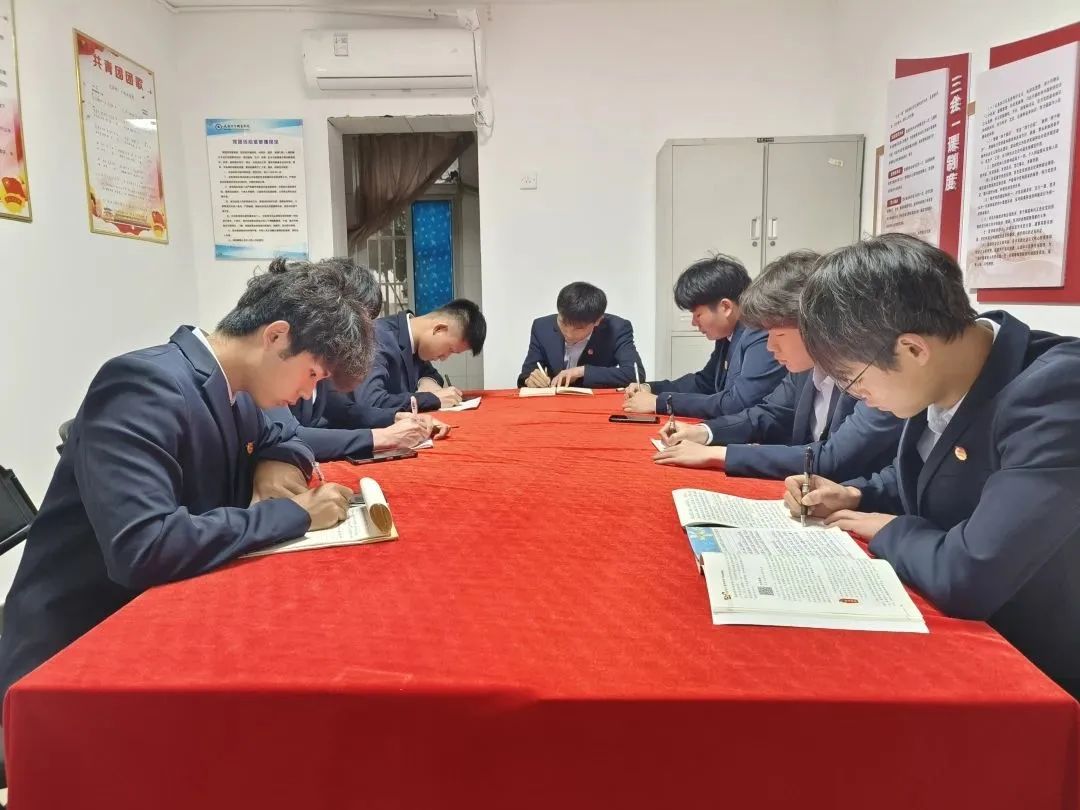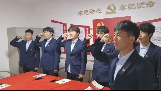 2023年第一批入党积极分子6名学员代表与党团活动室负责人一同开展了本次活动,本次主题团日活动分为四个环节:该活动室的功能介绍、集体学习党的二十大相关报告、党课学习中存在的问题以及党员发展流程的解答、集体重温入团誓词。