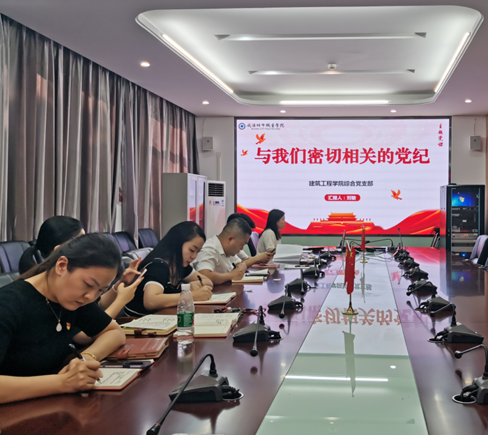 根据《武汉城市职业学院关于在全校开展党纪学习教育的实施方案》精神,建工学院党总支及时部署动员,制定工作方案,原原本本学《条例》、认认真真做研讨,规规矩矩讲党课,端端正正重警示,做到学纪、知纪、明纪、守纪,推动党纪学习教育走深走实。