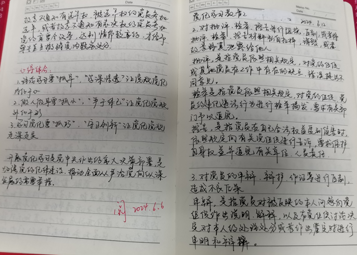 学校分期举办党纪学习教育读书班暨《中国共产党纪律处分条例》辅导报告会和党纪学习教育专题培训班,学院领导干部、 纪检委员、党支部书记、党风廉政监督员和组织员按要求参加培训学习。各支部每月通过“三会一课”、主题党日和党员个人自学等形式,学习习近平总书记关于党纪学习教育的重要讲话和重要指示精神,原原本本学《条例》、认认真真做研讨。通过学习和研讨,学院全体党员干部把遵规守纪刻印在心,内化为言行准则,进一步增强了政治定力和纪律定力。