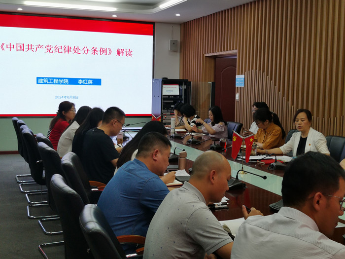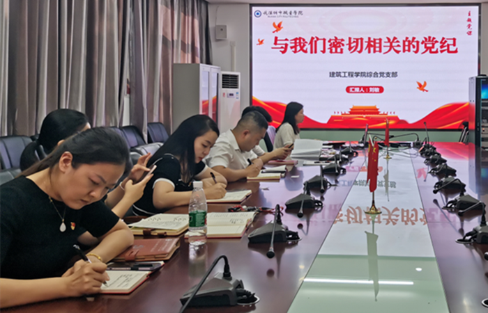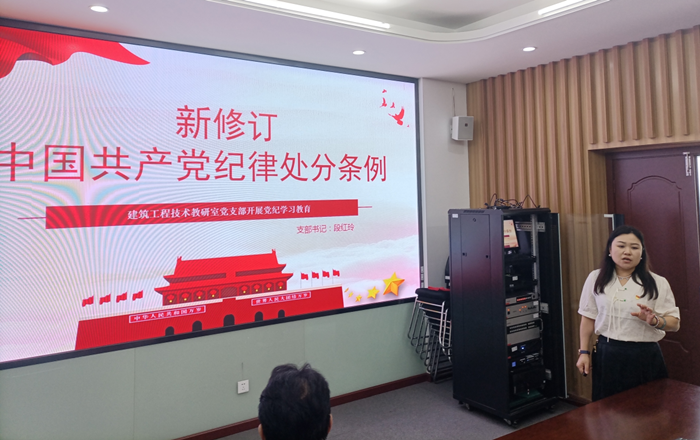 根据《武汉城市职业学院关于在全校开展党纪学习教育的实施方案》精神,建工学院党总支及时部署动员,制定工作方案,原原本本学《条例》、认认真真做研讨,规规矩矩讲党课,端端正正重警示,做到学纪、知纪、明纪、守纪,推动党纪学习教育走深走实。