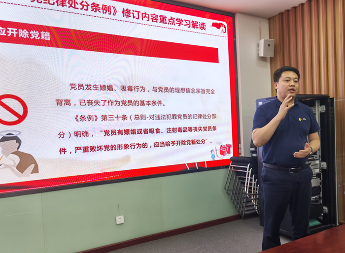 围绕新修订的《中国共产党纪律处分条例》,学院领导干部带头、支部书记讲专题纪律党课,通过党课学习,学院全体党员干部深刻理解党的纪律的内涵和要求,增强纪律自觉性,做到知敬畏、存戒惧、守底线。
