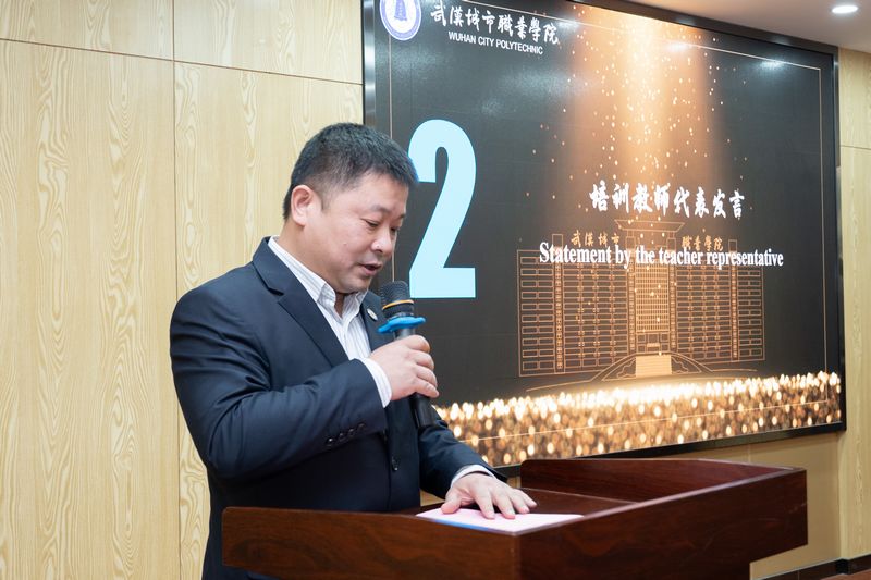典礼在一段精彩的培训工作总结视频中拉开帷幕,视频回顾了培训期间学习与生活的点点滴滴,展示了学员们在专业技能上的显著提升。随后,培训教师代表程斌教授深情回顾了与学员们共同度过的日子,对他们的成长与蜕变表示由衷的欣慰,并祝愿他们在未来的职业生涯中取得更大的成就;培训学员代表柯龙在发言中表达了对中交乌干达分公司和学院提供的宝贵学习机会的感激之情,并分享了学习过程中的感悟与收获;培训志愿者代表刘彤雨同学分享了他在志愿服务过程中的心路历程,以及与学员们建立的深厚友谊。