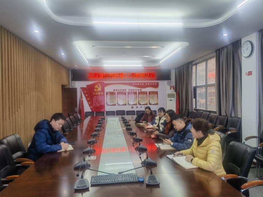 2024年12月25日,在建工实训楼6-1-404,工程造价教研室主任王晓青老师主持召开工程造价教研室12月教研活动。 本次教研活动的主题围绕期末工作安排开展。 解读诚信考试的规章制度,对于正在开展的期末考试,强调落实监考职责。期末阅卷按照规定流程和要求严格进行,保证期末考试成绩评定公平公正。最后大家一起进行学院的2025迎新春联欢活动节目排练。
