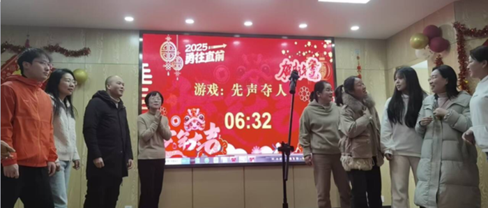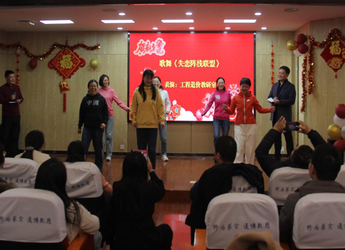 文艺表演环节真是精彩纷呈,高潮迭起。智能建造教研室带来的歌曲《明天会更好》歌声嘹亮,传递出对学院未来的美好憧憬;建筑工程教研室的《若月亮没来》旋律优美,令人陶醉;工程造价教研室的歌舞《失恋阵线联盟》活力四射,将现场气氛推向了高潮;数字测绘教研室的《相亲相爱一家人》温馨感人,唱出了教职工间的深厚情谊;实训教研室的《一生有你》深情款款,唤起了大家的美好回忆;学工办的舞蹈《APT》动感十足,展现了青春活力;综合办、教学办的朗诵《记得2024,迈进2025》声情并茂,回顾了往昔岁月,展望了美好未来。