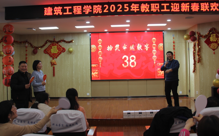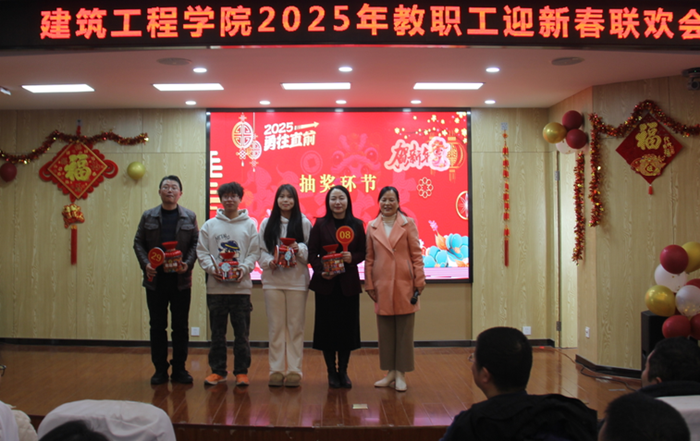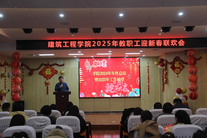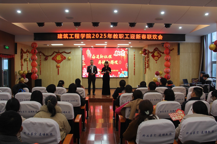2025年1月10日上午,建筑工程学院在6-2-205举行了2025年教职工迎新春联欢会。此次活动通过让全体教职工欢聚一堂、展现风采,旨在进一步增强大家的凝聚力,营造团结和谐的学院氛围,提升全体教职工的幸福感、获得感和认同感,激励全体教职工继续团结、奋进、求实、创新,以饱满的热情投入到新一年的工作中去。