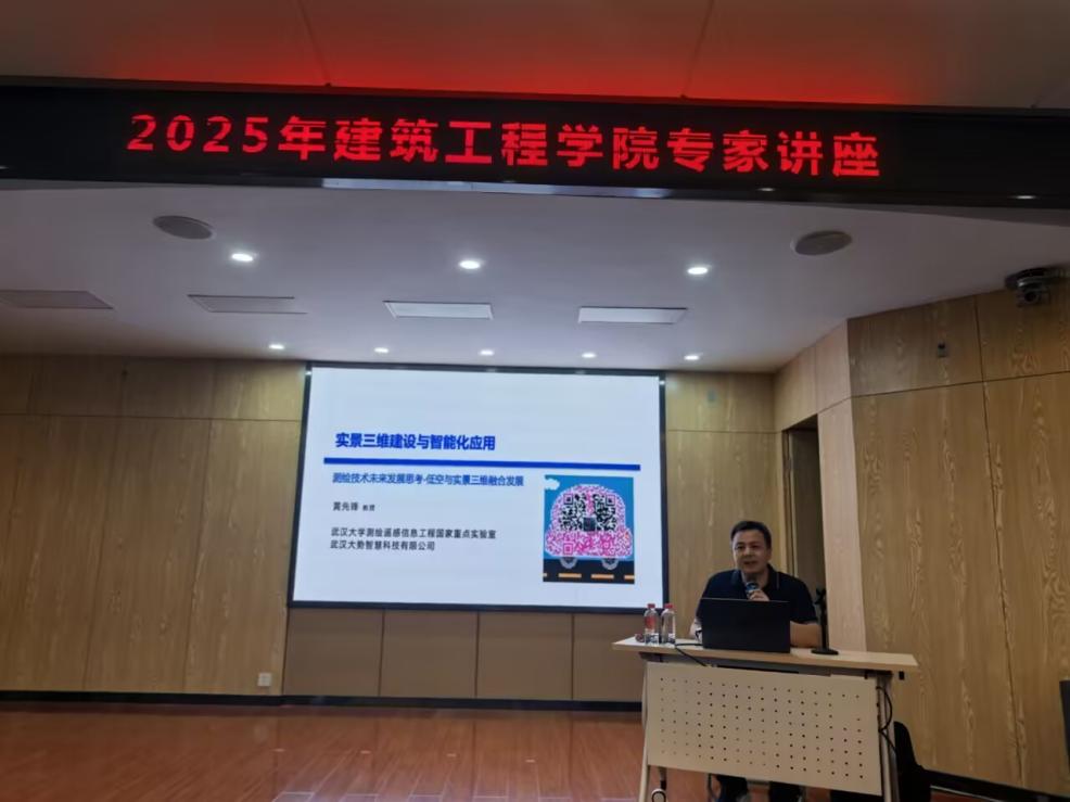 2025 年 7 月 8 日,应我院邀请,武汉大学遥感与测绘国家重点实验室教授、博士生导师黄先锋莅临我院,带来了一场主题为 “实景三维建设智能化应用” 的精彩讲座。黄教授同时担任某公司首席执行官,在项目策划实施及公司经营管理方面经验丰富,且长期深耕计算机与地理空间领域科研工作,对海量空间数据管理、计算机视觉、图形技术及机器学习等有着深刻见解,并主持参与了多项包括 973、863 在内的国家、省部级科技项目。