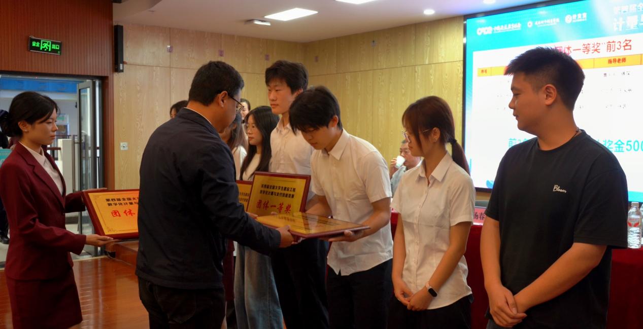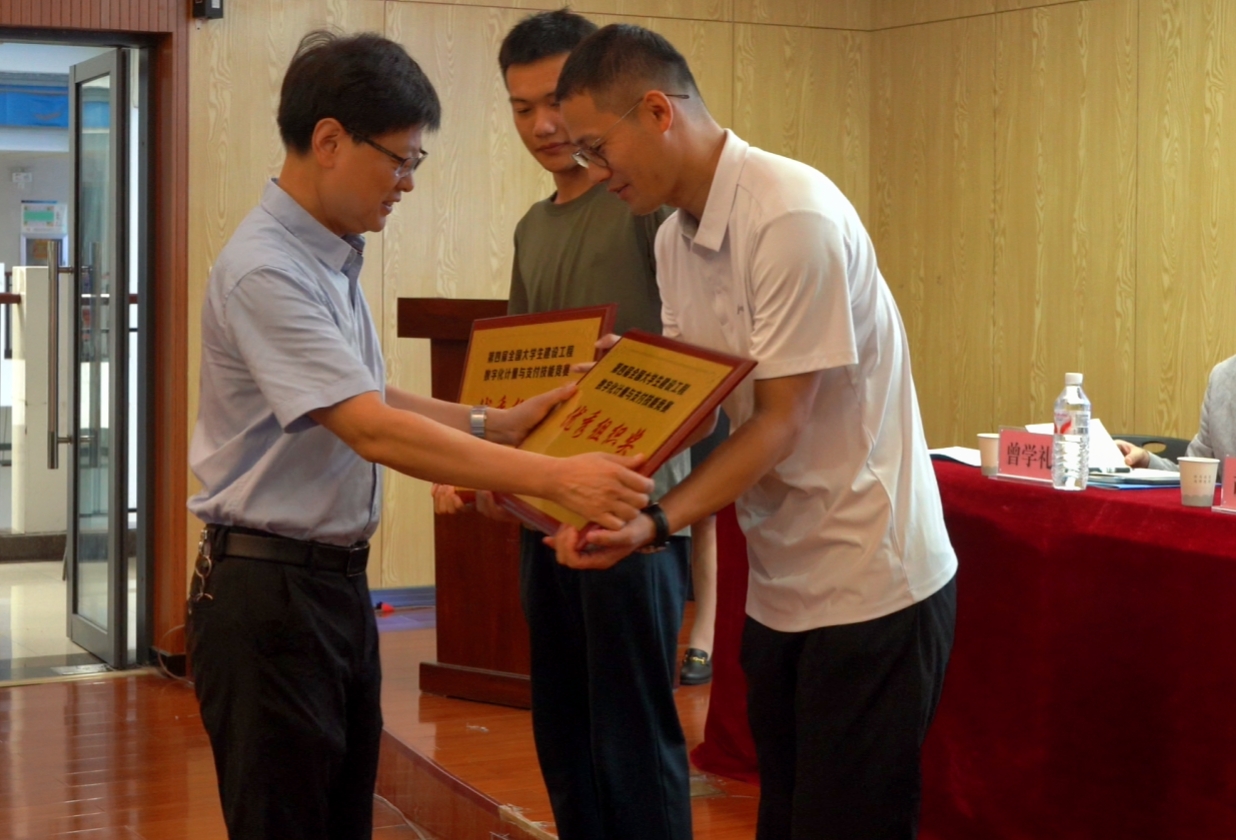 裁判长曾学礼宣读获奖名单后,与会领导为获奖团队颁奖。