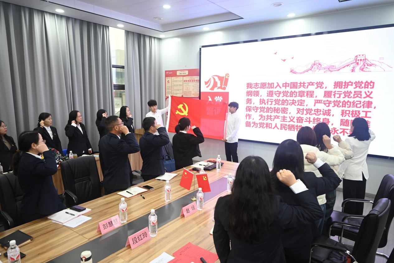 下午2 时,第一篇章:不忘初心——强化党员党性观念和宗旨意识在庄严的《义勇军进行曲》中拉开帷幕。活动中,全体党员在李红英书记的领誓下重温入党誓词,共同学习党的二十届四中全会精神、习近平总书记近期重要讲话和重要指示批示精神以及2025年四季度全省重大项目建设推进会精神等内容,智能建造专业群学生党员、发展对象朗诵《穿越时空的对话》。赵君、李红英、程斌共同为6名党员代表赠送了政治生日贺卡和寄语。