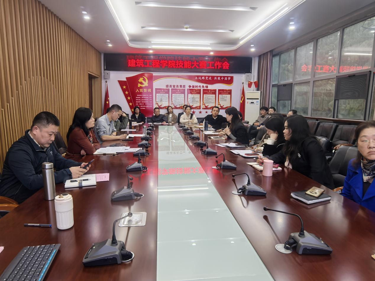 为系统总结2025年技能大赛参赛经验,科学部署2026年备赛工作,进一步完善竞赛组织管理机制,建筑工程学院于2025年11月6日下午在6-1-404会议室召开了技能大赛工作专题会议。学院领导、各办公室及实训中心负责人、教研室主任、专业负责人以及2025年、2026年各赛项指导教师代表共同参会。