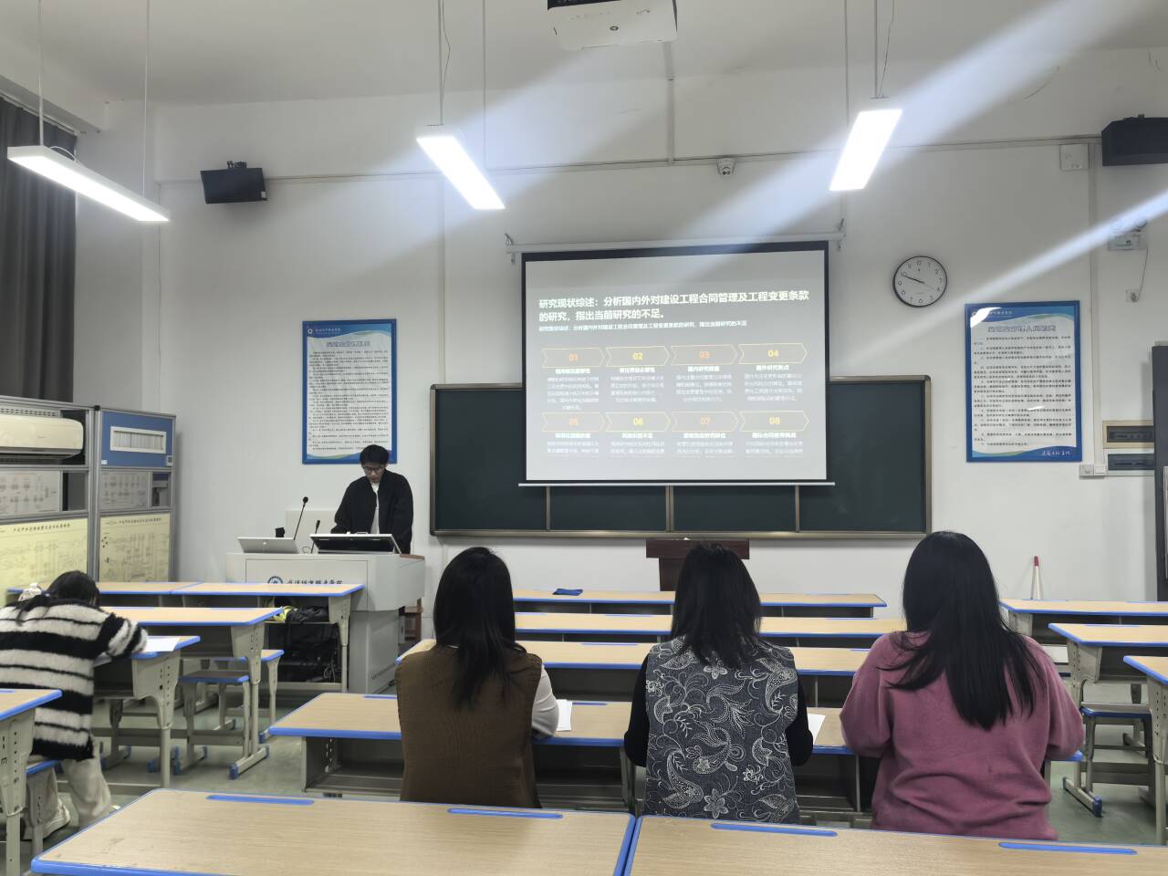 答辩过程中,考生依次围绕论文研究背景、核心观点、研究方法及创新点等内容进行汇报,随后接受由答辩委员会的提问。答辩老师结合工程管理专业前沿动态与行业实际需求,从论文逻辑严谨性、理论应用深度、实践指导价值等方面提出针对性问题,考生沉着应答、条理清晰,充分展现了扎实的专业知识储备与良好的临场应变能力。