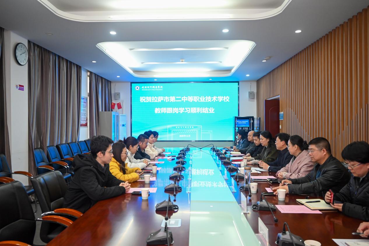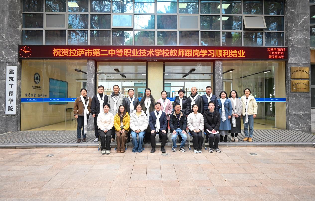 2025年12月15日下午,拉萨市第二中等职业技术学校教师跟岗学习总结会在建筑工程学院隆重举行。校党委副书记杨爱民出席会议,组织部、人事处、教务处、建筑工程学院、计算机学院、机电工程学院主要负责人,拉萨二职跟岗教师及指导教师代表共同参加。会议由教务处处长肖静主持。
