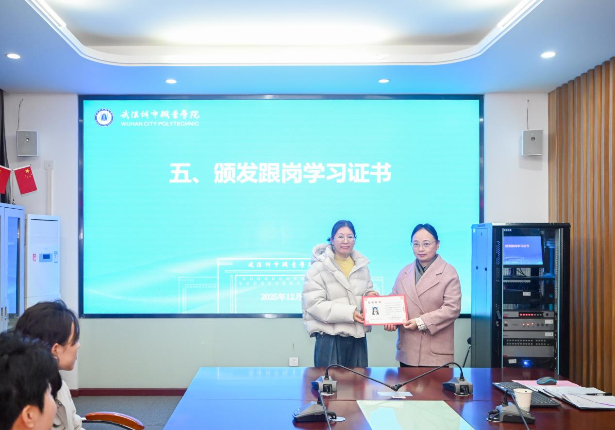 拉萨第二中职学校翟彩霞老师作为跟岗教师代表发言,分享了在专业教学、实践技能等方面的收获与感悟,对学校提供的优质学习平台和指导教师的悉心指导表示衷心感谢。建工学院段红玲老师代表指导教师发言,详细阐述了指导过程中的教学思路与交流心得,肯定了跟岗教师的学习态度与进步。会议为全体跟岗教师颁发了学习证书,见证学习成果。