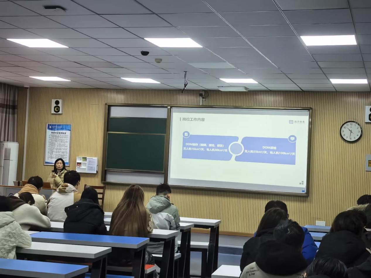 “DOM制作中如何平衡数据精度与效率?”“寒假实习会接触哪些真实项目模块?”互动环节,学生围绕技术难点与实习细节积极提问,专家结合实操经验逐一解答,同时分享职业成长路径,强调“精准化操作、规范化记录”的岗位素养要求。现场还明确了寒假实习的核心任务:武汉追月信息技术有限公司将为学生分配DOM制作真实项目,学生需在企业导师指导下完成从数据处理到成果交付的全流程实践;学校同步出台学分置换细则,明确学生项目成果经企业考核合格后,可按规定置换《GNSS测量》《控制测量》等专业课程学分,置换学分纳入人才培养方案总学分,累计不超过专业课程总学分的10%,真正实现“实践成果=学业认可”的育人闭环。
