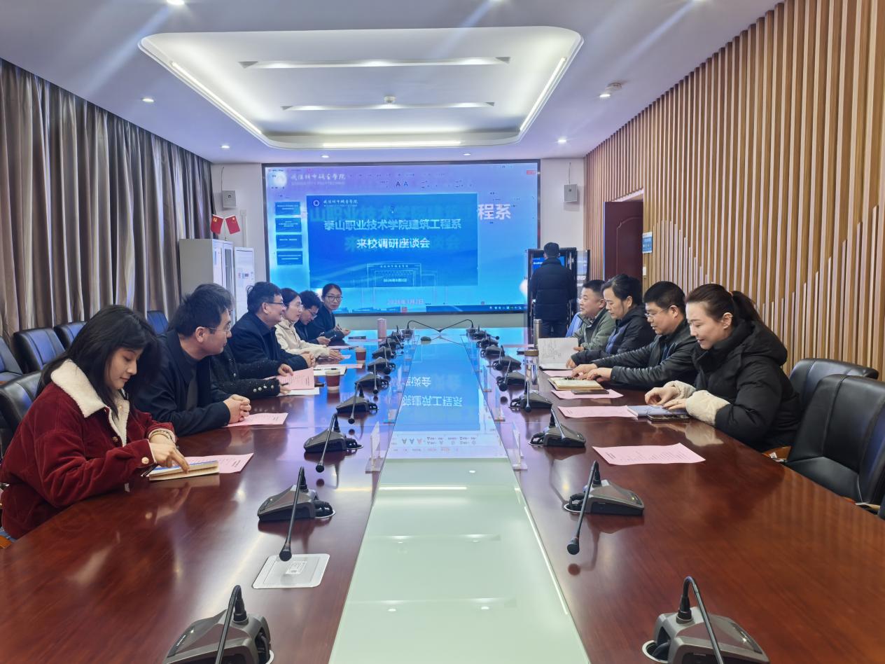 3月2日上午,泰山职业技术学院建筑工程系党总支书记张子学、主任王桂珍一行六人,莅临学院开展调研座谈。学院党总支书记李红英、副院长张善军、程斌及各教研室主任、学工办主任参与座谈,武汉追月信息技术有限公司教育总监常苗受邀出席。会议由副院长程斌主持。